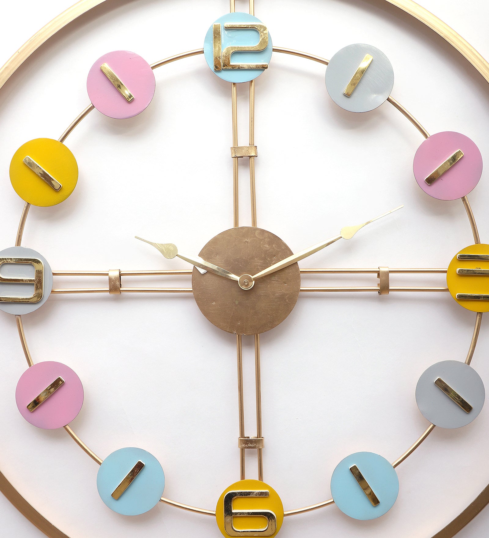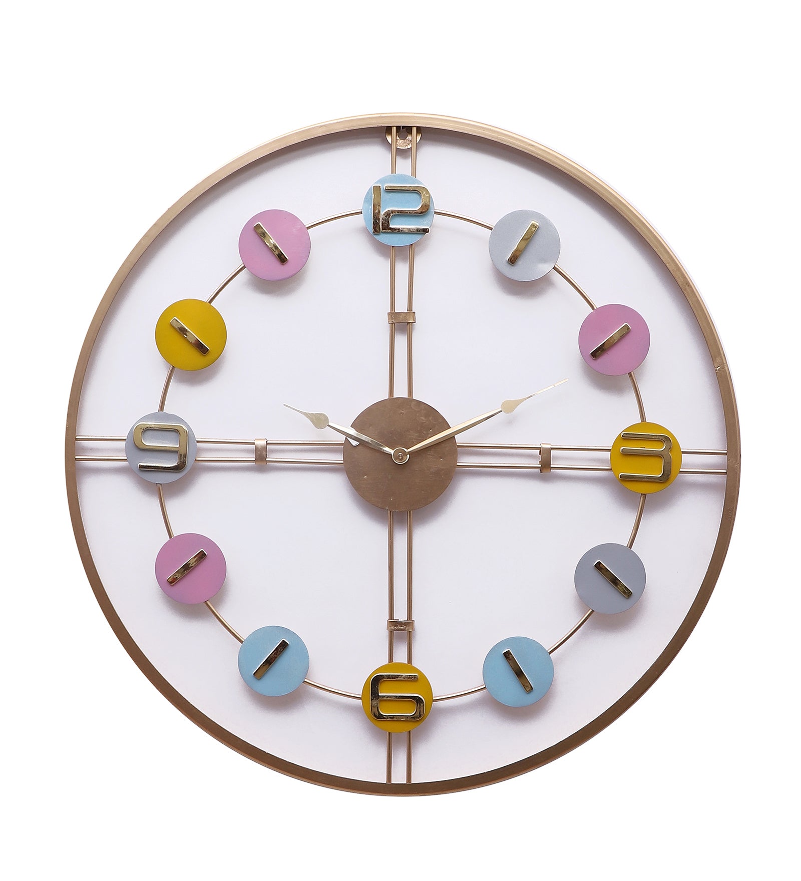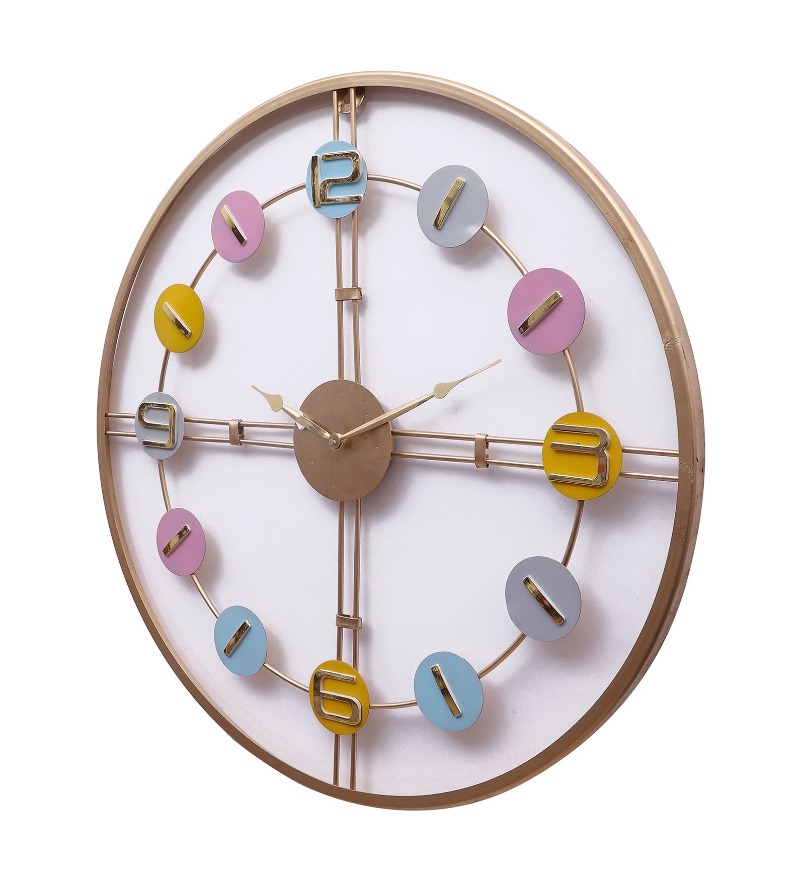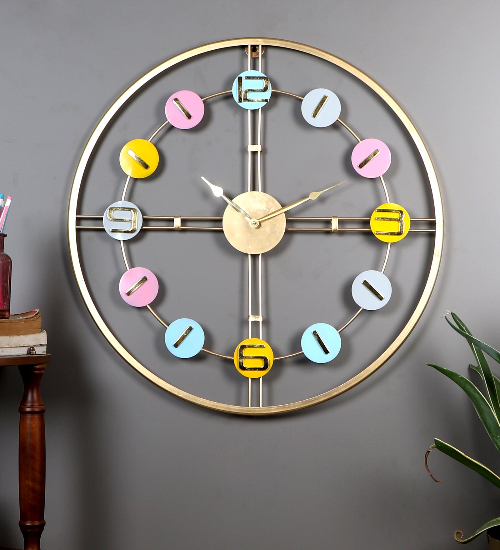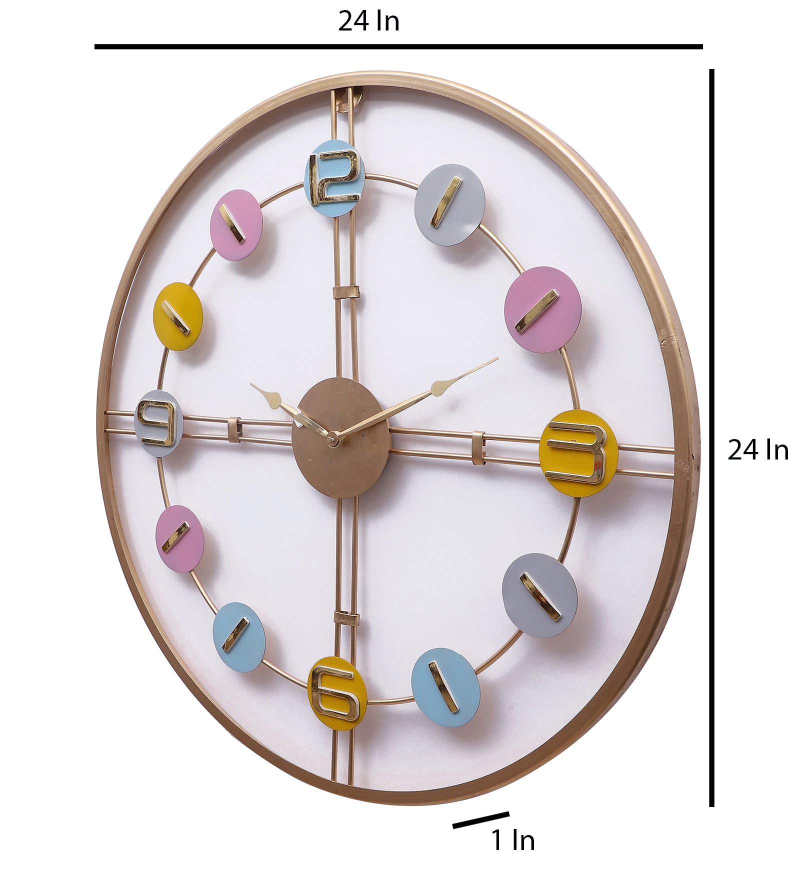 Amaya Decors Multicolor Number Gold Frame Wall Clock -