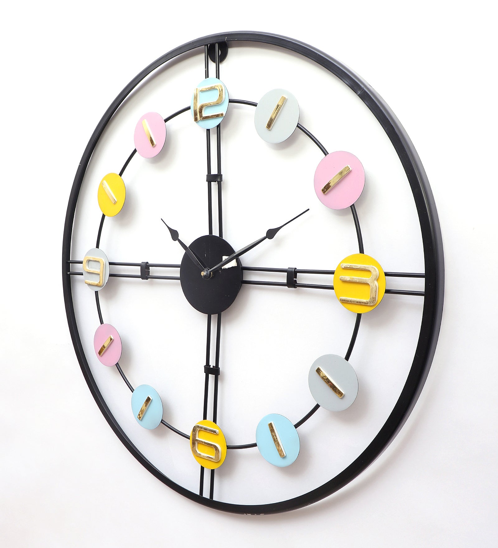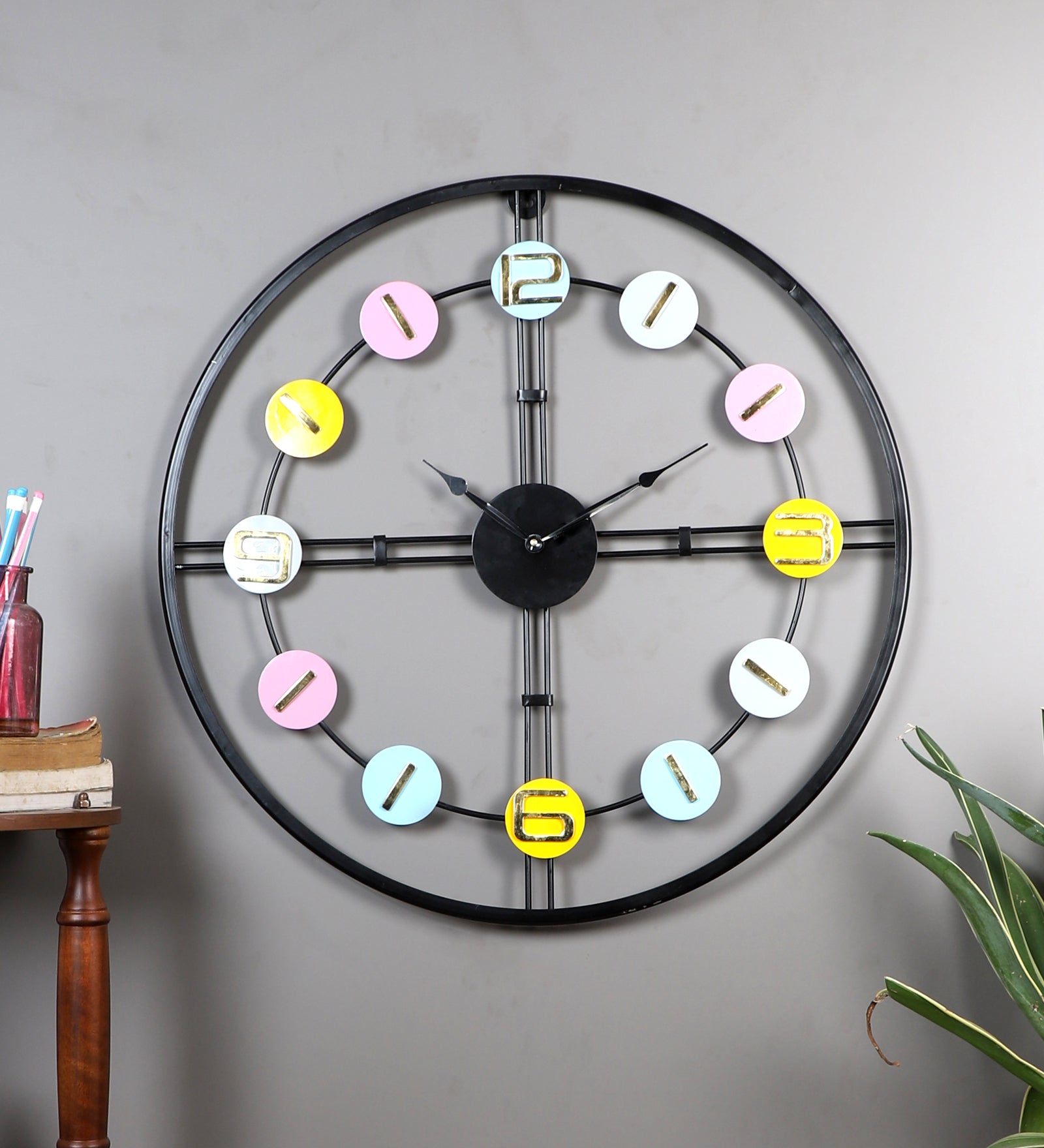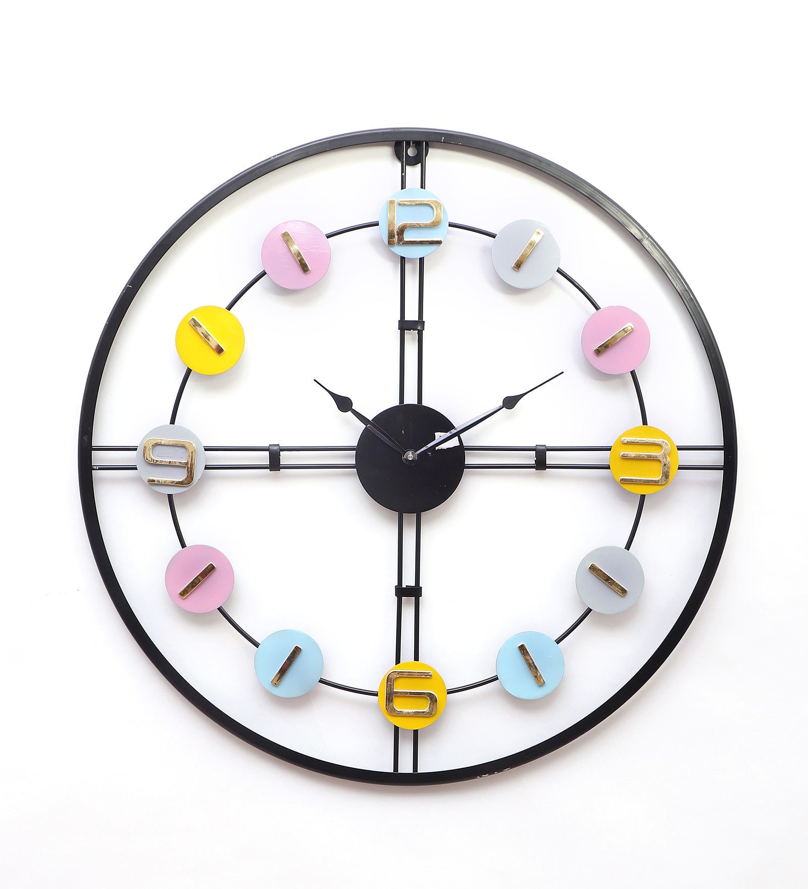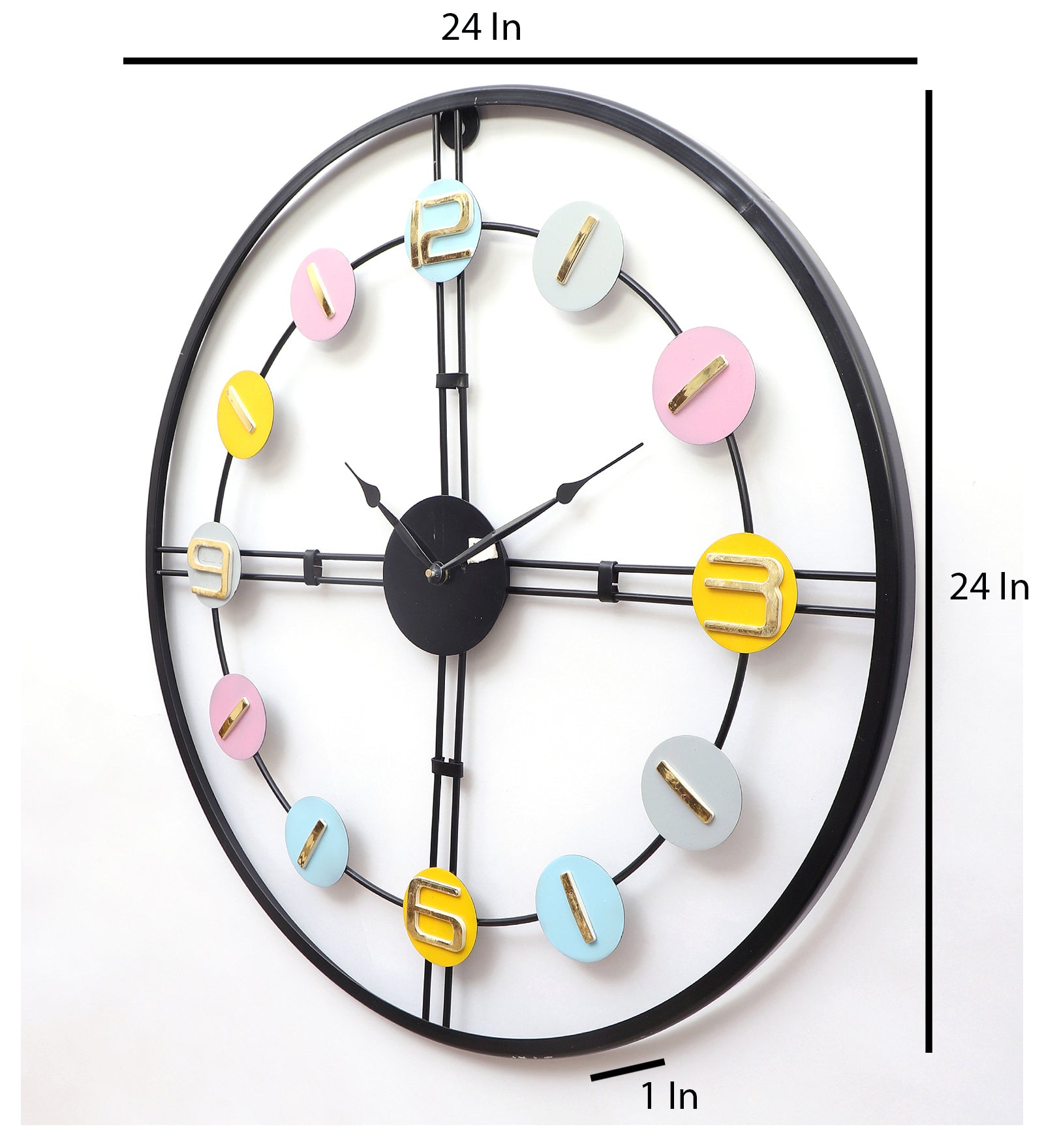 Amaya Decors Multicolor Number Black Frame Wall Clock
