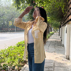 Bask in carefree, sunlit vibes with the breezy yellow striped Buttercup shirt. The playful pastel hues and floral buttons evoke a cheerful, laid-back energy, making it perfect for warm weather. Whether you're strolling through a weekend market or enjoying a casual brunch, this shirt radiates effortless charm. Style it open over a tank and denim shorts for a relaxed look or button it up with linen pants for a smart-casual twist.