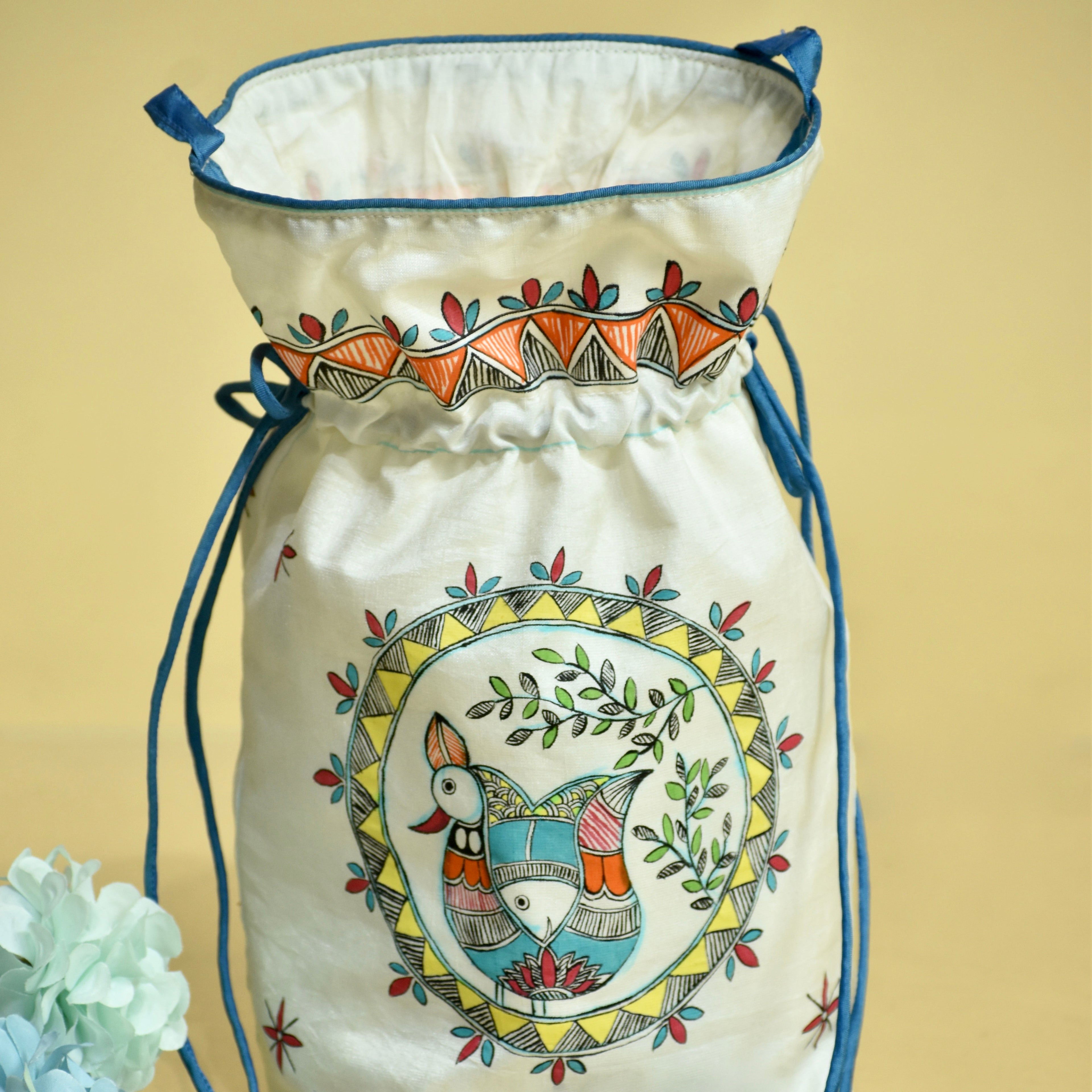 Feather & Fins Silk Handpainted Madhubani Potli