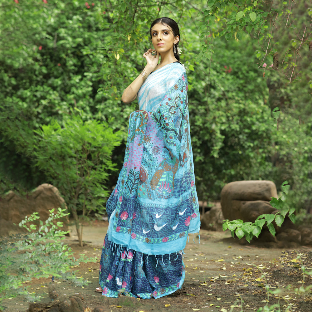Madhubani painting is a famous art that originated in the Mithila region of Bihar (India). Madhubani hand-painted art is considered to be as old as the era in which Ramayana was set. It is said that inhabitants of the Mithila region painted their homes and streets with Madhubani art. Madhubani paintings were done to celebrate the wedding of Lord Ram and Sita. Madhubani paintings were done using natural colors and twigs of the tree. These days it is done using acrylic paints and brush. Each item is handcrafted with the hand-painting technique, and might carry variations of color, patterns and other delicate inefficiencies. Handloom fabric may have uneven texture.