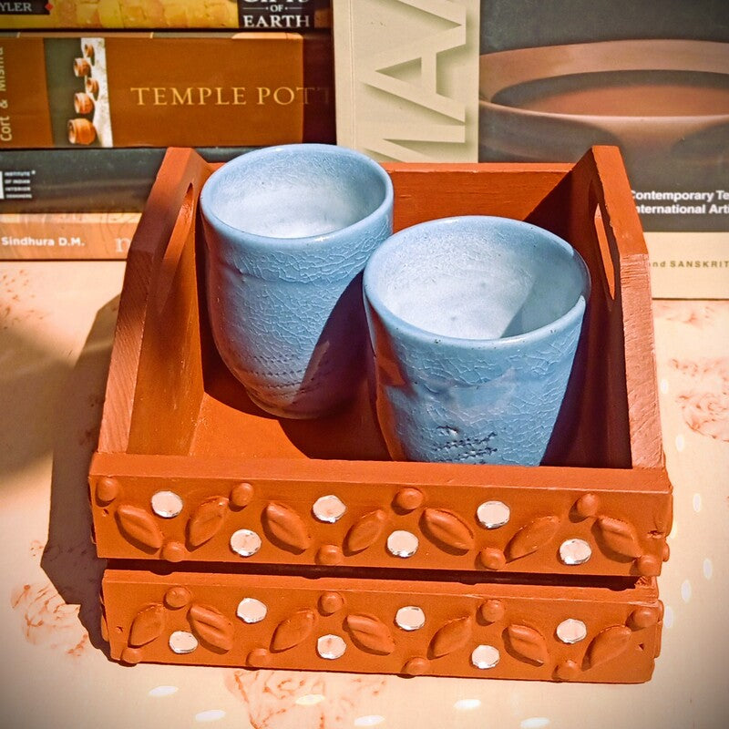 Welcome authentic traditional Kutch lippan mud art into your homes with this beautiful serving tray. Craft:"लिप्पन काम” or Lippan is mural folk art form from Kutch, Gujrat, India. Originally used to decorate the walls of indigenous houses in Kutch, the craft has been adapted to a contemporary avatar to bring you this beautiful collection, inspired from the craft and made in contemporary materials for durability, by artisans from the desert communities! Process:This beautiful mud-work from one of our clusters in kutch, has been done with cold-ceramic process where the clay is pasted onto the pine wood and mdf tray base, left to dry, painted and then the panel decorated with mirrors. Utilities: Organizer, Stationery Tray, Storage Tray, Toy Tray, Gift Tray, Fruit Tray; perfect blend of tradition and elegance, this rectangle wooden tray is comfortable for serving dry fruits, foods, and drinks when guests come over. Can also be used to make hampers and return gifts to your loved ones. Price for 1 tray. Dimensions : 8x10x2 inches Country of Origin: India