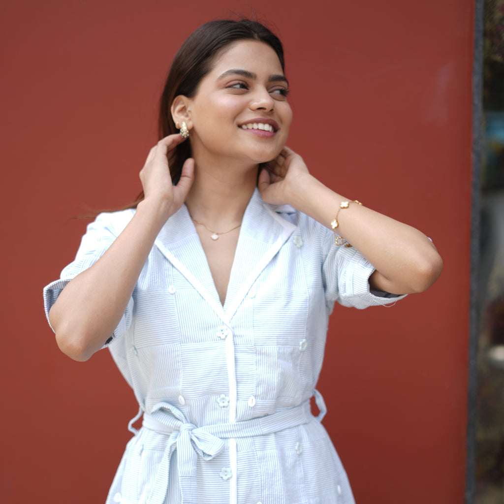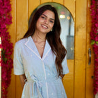 The Sea Breeze dress radiates effortless elegance and breezy charm. The soft, airy fabric and relaxed silhouette offer comfort and ease, making the wearer feel graceful yet carefree. Perfect for warm, sunny days, it’s ideal for outdoor brunches, vacations, or casual strolls. Pair it with sneakers for a laid-back vibe or elevate it with strappy sandals for a refined, chic look. Ideal for casual and brunch occasions.
