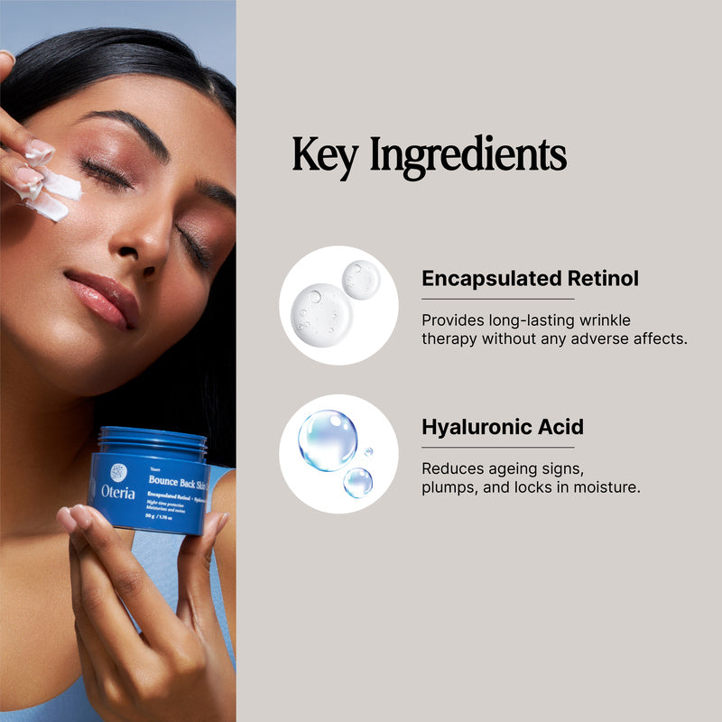 With a potent formula consisting the likes of encapsulated retinol and Hyaluronic Acid, the Bounce Back Skin Cream offers visible results in just two weeks with potent wrinkle therapy, intense moisturisation, and advanced photo-ageing protection.